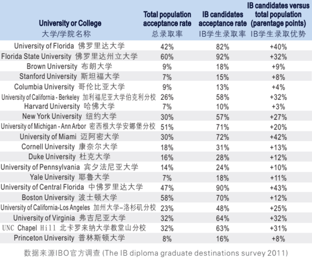 國際文憑課程組織的調查顯示,IB學生進入常春藤聯盟大學的錄取率比總錄取率高18%。對于排名靠前的非常春藤盟校的大學來說,IB學生更容易被錄取。在大學選拔過程中,IB學生會更有綜合競爭力。
