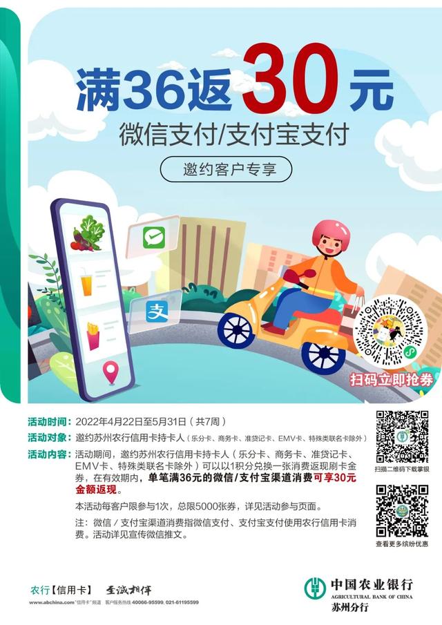 農行信用卡優惠|微信、支付寶支付滿36返6.6元,邀約客戶滿36返30元!