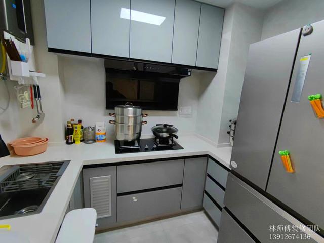 廚房U型設(shè)計(jì),儲(chǔ)物能力最大化。白色與湖藍(lán)色搭配,為主人提供一個(gè)輕松舒適而又實(shí)用的烹飪空間。