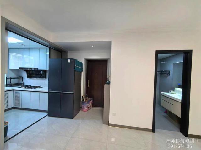 冰箱放在玄關處,離廚房近,既方便拿取,又避免廚房油煙。玄關的另一邊是鞋柜,方便收納鞋子,保持大門口整潔。