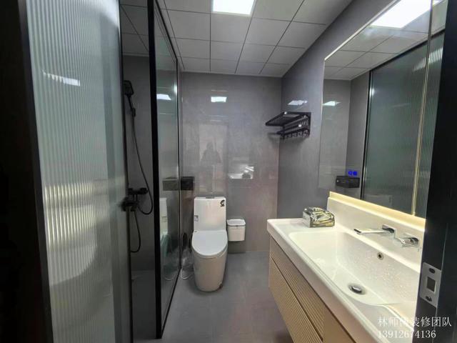 衛生間使用了比較深的瓷磚,這樣比較耐臟。干濕分離的設計,也是為了今后的打掃更省心。