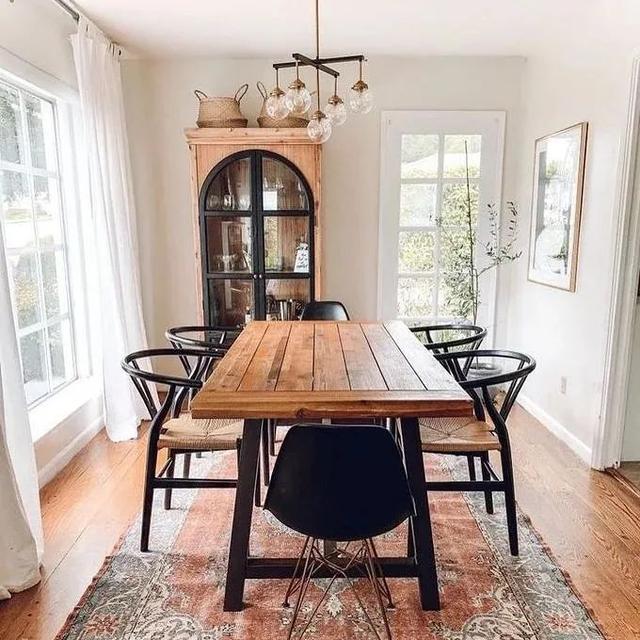 在餐廳的家具選擇上,餐桌椅顯然是必不可少的。從風格上看,餐桌椅要與餐廳的整體裝修風格保持一致;從材質(zhì)上看,實木的餐桌椅會比較耐用美觀。餐桌椅一般選用成套的,如果想要分開購買,要注意椅面到桌面的高度差以30cm左右為宜,這樣舒適度最佳。