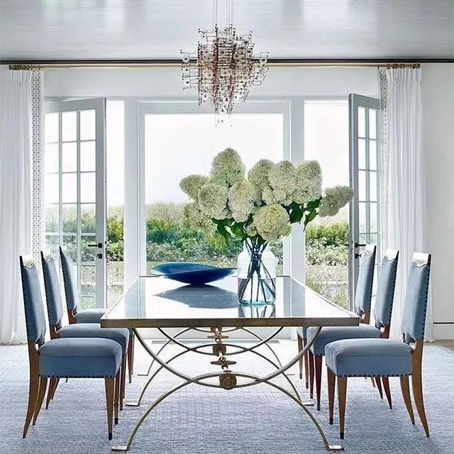 如果家里是開放式餐廳,那么在位置選擇上要盡量靠近廚房,可以加入中島,進一步縮短傳菜的動線。中島是一個多功能操作平臺,可以在開放式的餐廚之間起到隔斷作用,明確地劃分出功能區(qū),也讓空間更為通透。