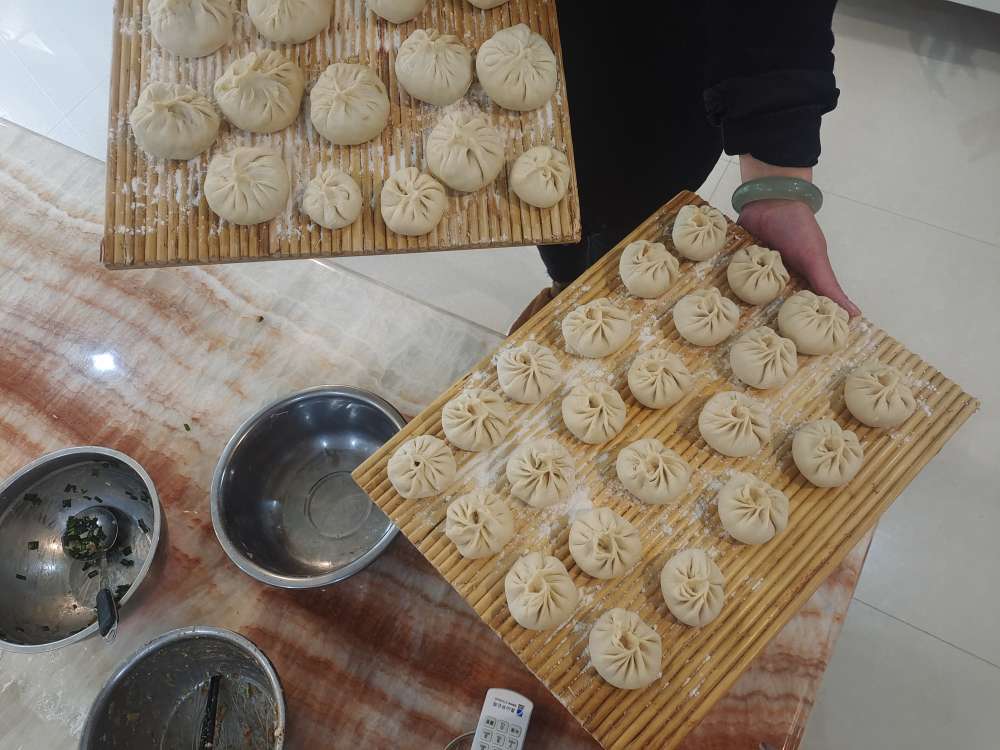 老大早上起床說好久沒吃媽媽的包子了要吃肉的,老二說要吃韭菜粉絲的。中午買了肉回來開始拌餡,等面發起來拿桌面包……結果還是很不錯的,面發好了,包子也很好吃。