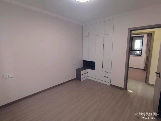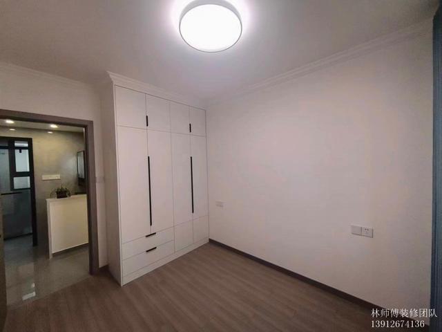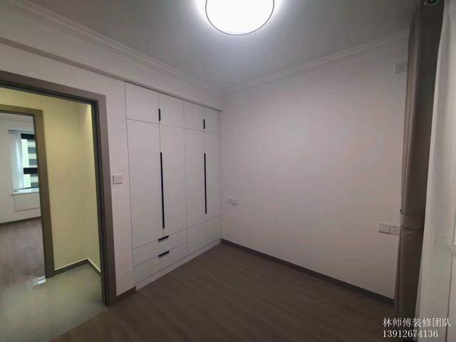 北房間也是,內嵌衣柜。這樣一來,房間空間就更大了,過道也不會顯得窄又深。