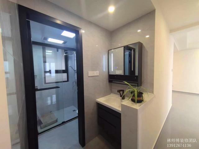 由于家里只有一個洗手間,考慮后期使用,于是將洗手間設計成了三分離。同時,為了保證洗手池的采光和通透性,選擇了半墻設計。