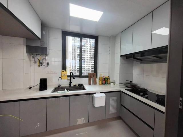 廚房也是灰白搭配,和家里的整體風格一致。上下都是櫥柜,收納能力也是非常高。并且,插座數量也很多,能滿足家里日益增多的廚房電器哦~