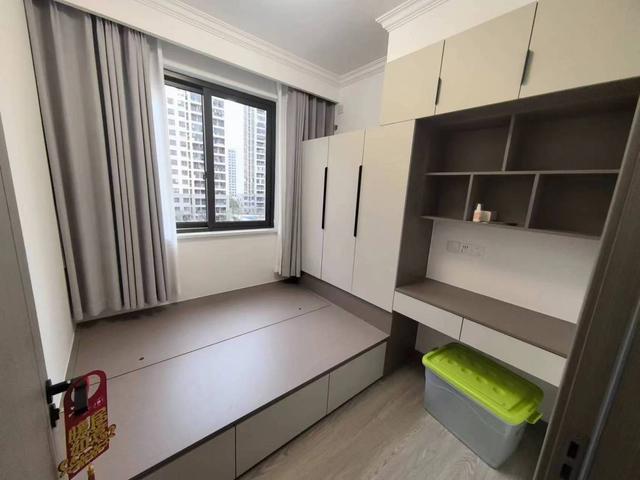 書房是榻榻米+衣柜+書桌一體化設計,一方面為家里預備了大量了儲物空間,同時也能作為獨立書房使用,避免房間空置。