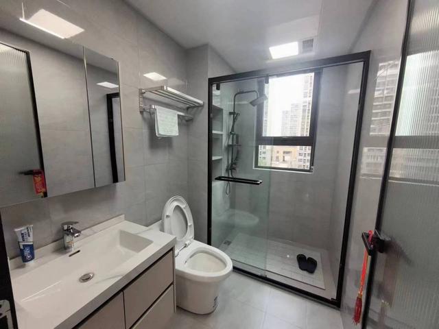 客衛,干凈清爽,淺色的瓷磚,不容易藏灰。鏡面柜和壁龕,收納一絕!