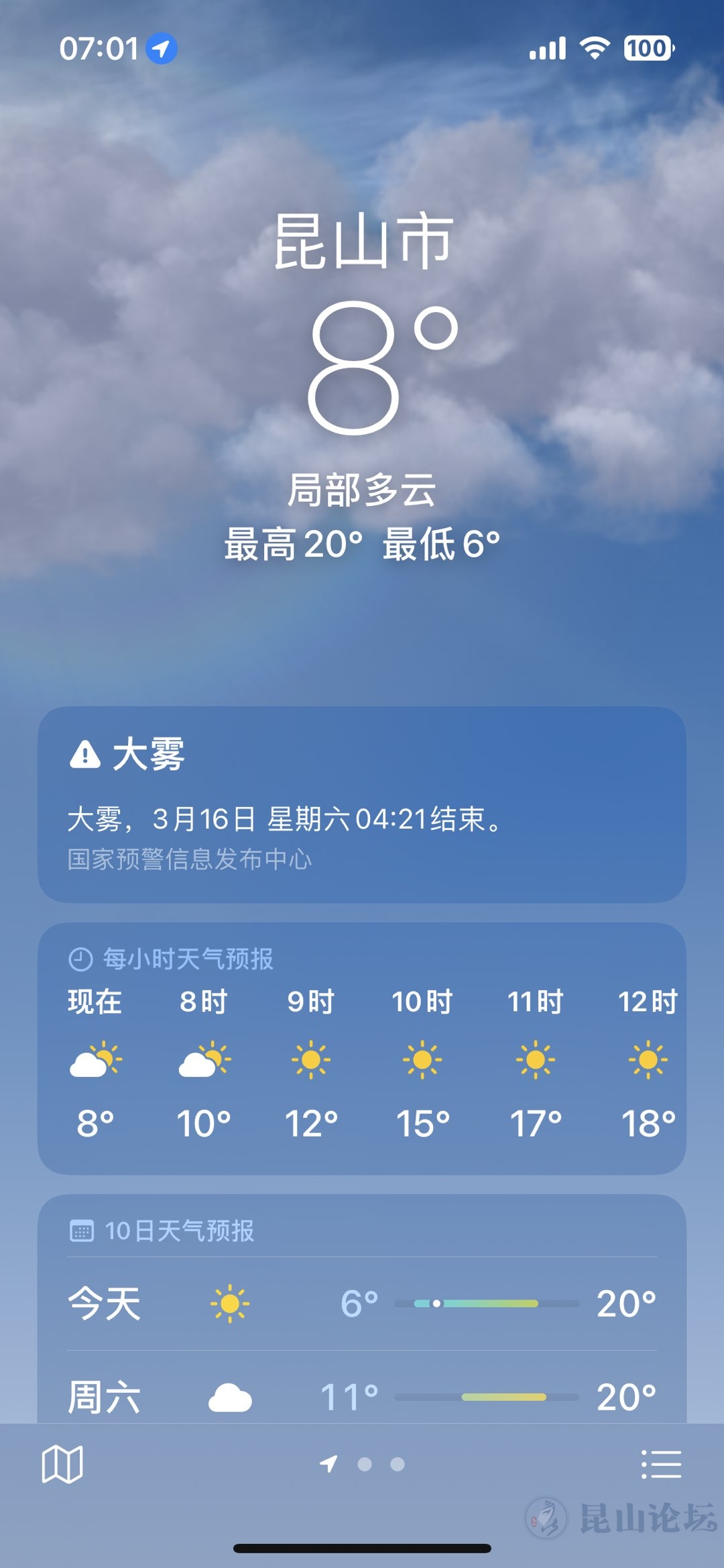 3月15日天氣預報:昆山最高氣溫20度,早上有大霧注意行車安全