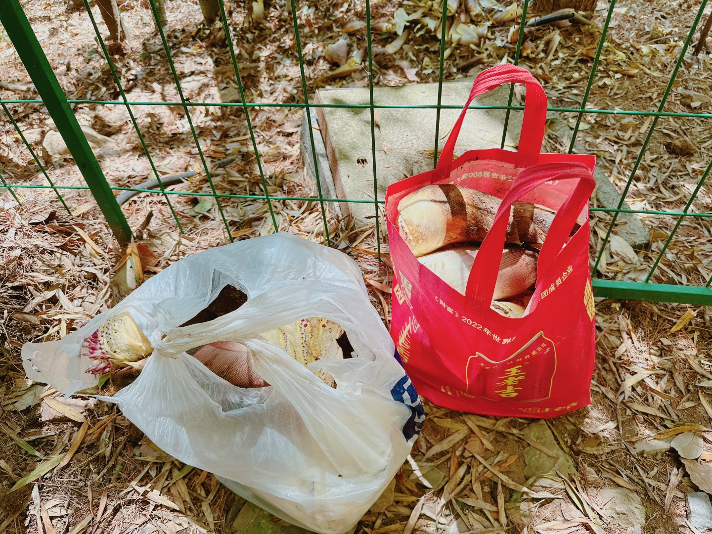 后面問娃爸挖筍還是烤肉,結果娃爸說挖筍。我前幾天拼夕夕特低買的挖筍工具有用武之地了。