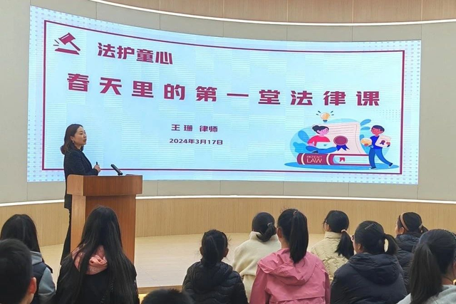 2024年春季開學,昆山市法宣辦聯合市教育局以“與法同行 護苗成長”為主題組織開展“開學法治第一課”活動,在全市中小學校范圍內廣泛宣講有關未成年人保護法、預防未成年人犯罪法、未成年人網絡安全保護條例等相關法律法規,提升青少年法治意識和法治素養。