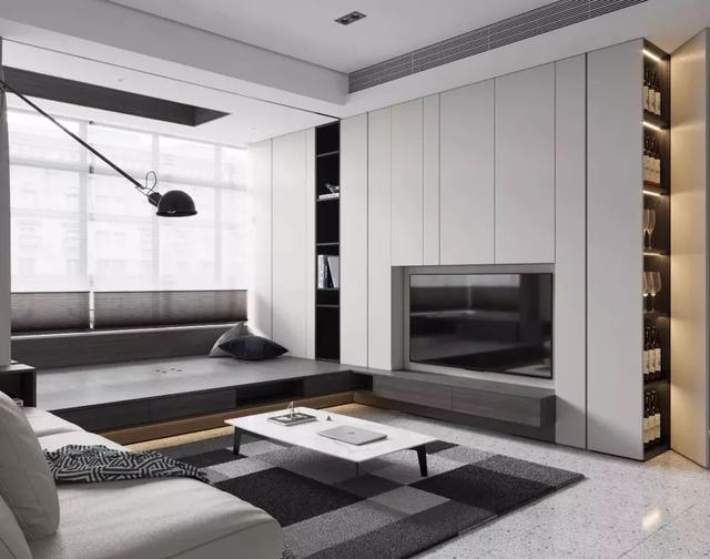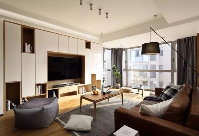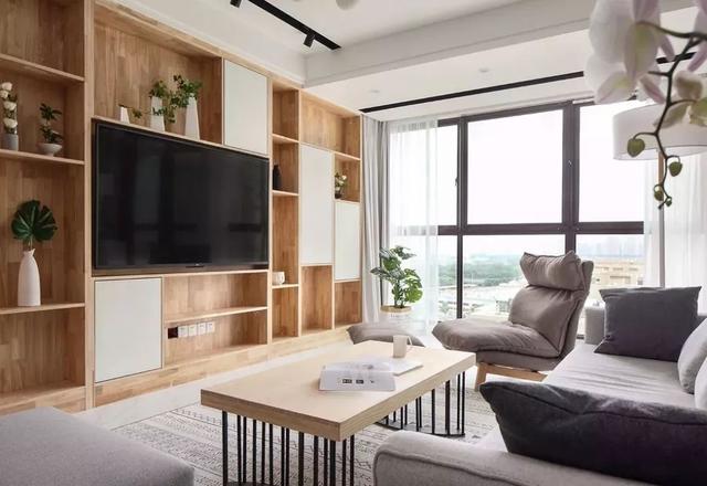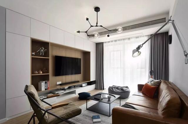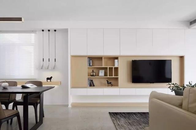 也有一部分的屋主會選擇把電視背景墻大部分的空間留空的設計,這樣客廳看起來會更寬敞一些,但打掃衛生的時候,就有些麻煩了。
