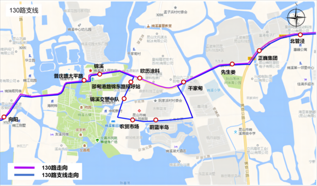 為方便市區及周莊方向居民前往昆山老年醫院(昆山市錦溪人民醫院),基于130路主線,開通130路支線,自2024年4月19日起開通130路支線。