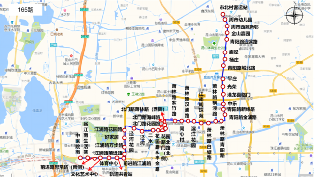 開通站點:市北村客運站、周市幼兒園、周市西苑新邨、金山嘉園、青陽路迎賓路、廟涇、楊莊、青陽路城北路、平莊、光榮、港龍喜臨門、中樂、青陽路新緯路、青陽路金浦路、蕭林路青陽路、蕭林路橫涇路、蕭林路白塘路、江南明珠苑、濱江花園、蕭林路漢浦路、同心村、蕭林路紫竹路、北門路蕭林路(西側)、北門路海峰路、北門路花園路、花園路北門路(北側)、花園路永豐余路、二水廠、涇河(施工期間僅停靠北側)、涇河花園、江浦路花園路、好家居、江浦路萬步路、江浦路前進路、軌道共青站、體育中心、文化藝術中心、前進路思常路(南側)、新江南生活薈、中醫院南
