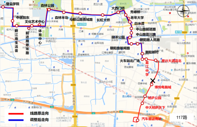 為提升線路運營效率,合理利用公交資源,截短線路長度,自2024年4月18日起調整117路,線路終點截短至火車站北廣場。