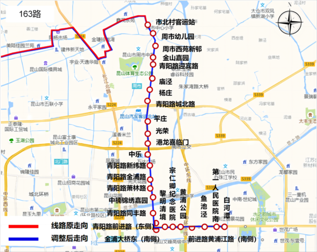 為進一步提升我市就醫出行配套,方便巴城、周市等北部片區前往第一人民醫院方向的出行,自2024年4月20日起調整163路,終點站延伸至白河潭。