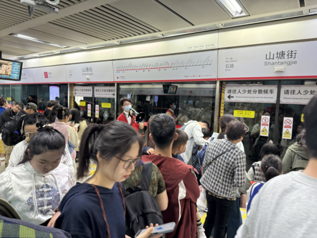 現(xiàn)場(chǎng)通過(guò)動(dòng)態(tài)調(diào)整進(jìn)出站閘機(jī)、出入口,加開(kāi)備車(chē)(共計(jì)4列次)等措施進(jìn)行客流引導(dǎo)及輸運(yùn),通過(guò)廣播及官方平臺(tái)發(fā)布客流誘導(dǎo)信息,全力保障乘客出行。