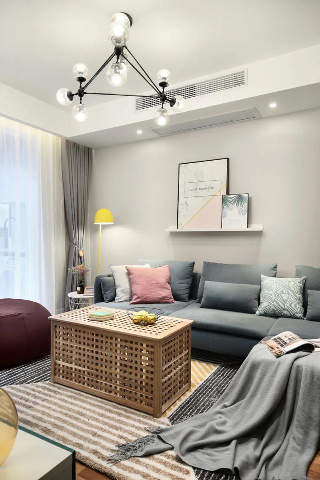 ▲木格造型的茶幾,搭配在簡約自然的地毯之上,也呈現出一種實用溫馨的畫面感。