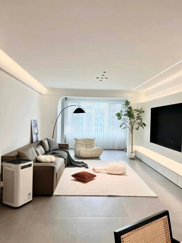 幾年前的電視背景墻通常會定制畫布,或者以大理石作為背景等,但這種裝修不僅限制空間,還容易過時,重點是很燒錢!可以做滿墻電視柜,增強收納空間,讓整屋顯得更干凈整潔。吊頂越簡單越好。復雜的吊頂不僅顯得壓抑,還非常燒錢。