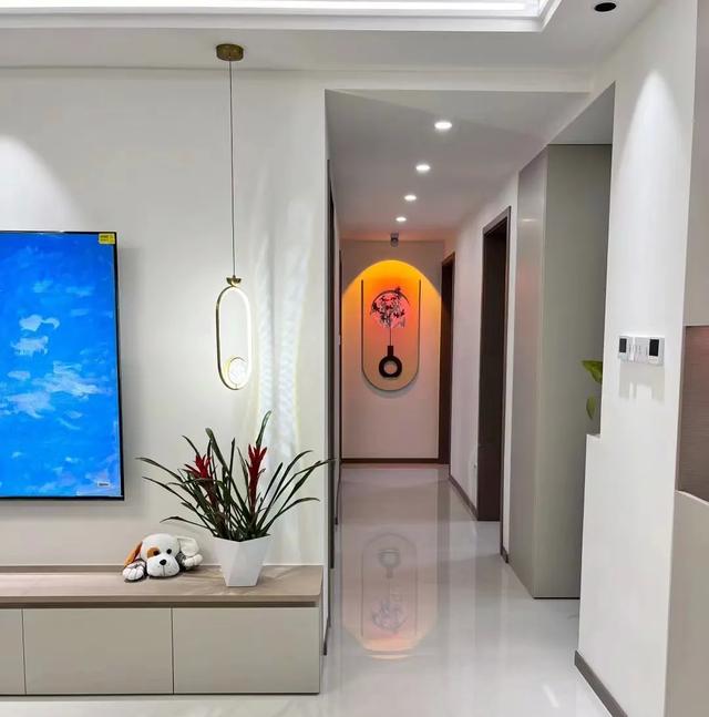 無主燈設計更顯層高,視覺上讓空間變大。傳統的吊燈不僅難打理,還會遺漏很多照明死角,無主燈讓整屋都充滿照明,更具氛圍感和高級感。無主燈光線柔和,不刺眼。