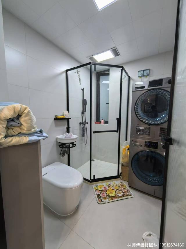陽臺不在是晾曬的地方,更多的是客廳的一部分,是家里人聚會放松的地方。因此,在設計時,把洗烘機安排在了洗手間,換下來的衣服直接洗烘,省時省事。