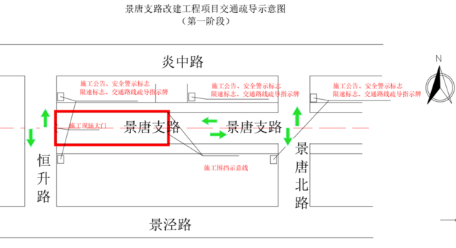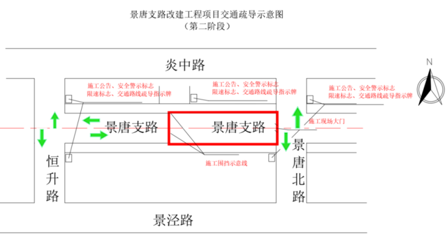 2024年11月22日至2025年1月6日景唐支路東半段封閉施工,封閉期間車輛禁止通行,非機動車和人員可從人行道通行。