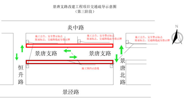 景唐支路改造工程,于2024年10月1日至2025年2月28日進行道路改造施工,屆時景唐支路道路東西兩側實行分段分時施工。請各位居民提前做好出行安排。(后附施工計劃及繞行圖)