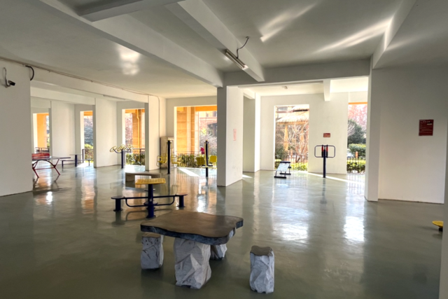 在延祥社區居民議事會上,居民反映小區公共休閑空間不足,老人小孩缺乏休憩場地,同時也對小區架空層電瓶車停放混亂、存在安全隱患表示擔憂。社區立即實地查訪:“能不能在閑置的架空層上做點‘文章’,既解決電瓶車亂停放,又能辟一塊活動場地?”由于架空層為公共空間,屬于全體小區業主所有,要改造還得大家說了算。于是在廣泛聽取居民意見的基礎上,經居民代表大會表決,“樂享客廳”啟動建設,并于2023年末建成。