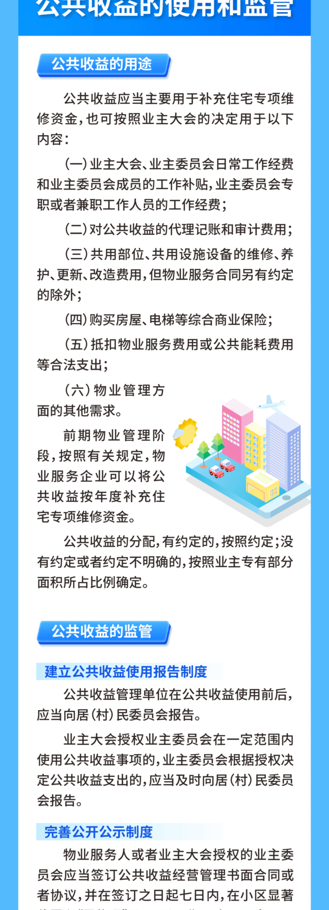 小區公共收益的歸屬、管理和使用關系到居民切身利益。去年以來,我市實施規范物業管理行為提升物業服務水平“十項措施”,持續聚焦公眾廣泛關注的公共收益,通過規范賬戶管理、開發線上平臺、完善收支流程等方式進一步加強公共收益資金監管,加強對物業企業、業委會(物管會)等管理主體的指導監督,推動公共收益數字化、可視化、規范化管理。
