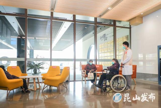 專線到達院區(qū)后,志愿者早早在站點等候,核對信息后用輪椅將陳大娘推送至“助老服務驛站”休憩,這里有柔軟的休息專椅、輪椅、老花鏡、放大鏡等各類適老化便民設(shè)施設(shè)備。