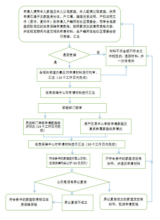 1.遞交申請:受理范圍內的住房困難家庭,凡符合文件規定條件的均可到戶籍所在社區住房保障窗口,登記領取相關審核表。在通知規定的期限內向所在社區,遞交申請書和申報資料(申報材料紙張統一為A4紙),逾期不予受理。