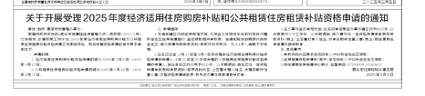 3月27日和4月18日分別為經適房購房補貼和公租房租賃補貼申請的最后一天。戶口、婚姻、房產、年齡等各類有關年限的證明材料計算日期至2025年3月5日。