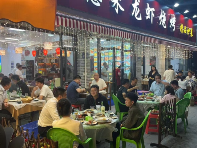 擺放有序的外擺位,是消費(fèi)者鐘愛紫竹路燒烤、龍蝦餐廳的原因之一。剛來昆山工作的徐先生找到紫竹路的方式頗為特別——通過在DeepSeek平臺(tái)搜索關(guān)鍵詞“昆山的燒烤龍蝦美食街推薦”,發(fā)現(xiàn)了這個(gè)推薦去處。“我們現(xiàn)在正坐在路邊吃晚飯,有種回到小時(shí)候的感覺,氛圍感拉滿!”