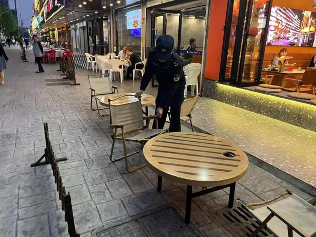 執(zhí)法人員還逐戶走訪40余家商戶,面對(duì)面指導(dǎo)外擺區(qū)域測(cè)量、設(shè)施擺放規(guī)劃,確保外擺政策全覆蓋,每家商戶也能清楚“能擺什么、怎么擺”。