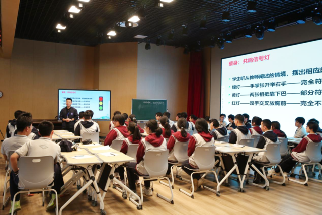 賽場上,曾晨杰老師以“獨立創新能力的AI時代培養”為切入點,以“科技與人性”為主題的情景演繹,引導學生辯證思考技術倫理,通過小組協作設計AI應用方案,破解生活難題,打造了一堂沉浸式主題班會。學生們化身“未來創客”,深度參與到主題內容中,進一步激發學生的主動性與創造力。