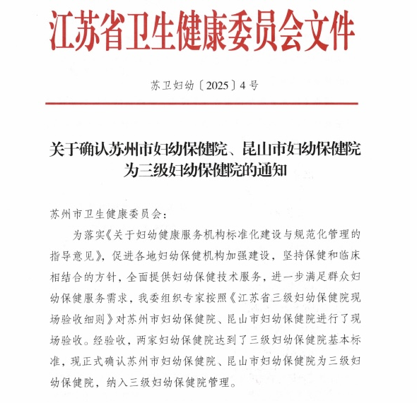 喜報!昆山市婦幼保健院正式確認三級醫院!