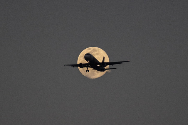 這是2023年3月6日在印度新德里拍攝的飛機和月亮。 新華社發(fā)(賈韋德·達爾攝)