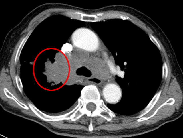 從 CT 影像看,這個右肺門腫塊高度懷疑是惡性腫瘤。但問題來了:老先生有結腸癌病史,這個肺腫塊是新長的肺癌(原住民),還是結腸癌轉移到肺部(移民者) ?