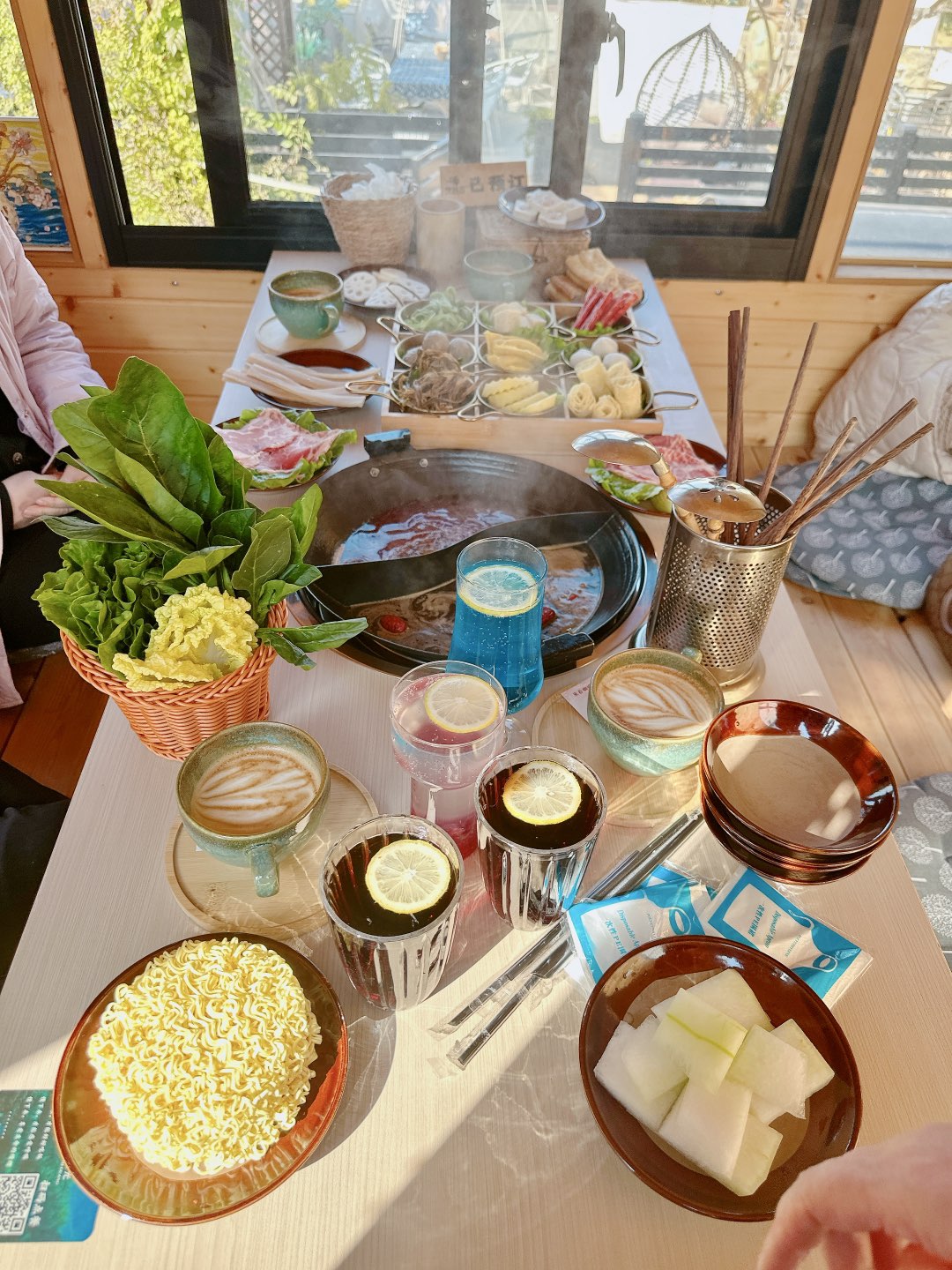 這家咖啡也好喝的,想來打卡最好提前電話預訂,還好我楠姐事先打電話咨詢過了,店員說上午來有位置,我們11點不到到達,蠻多位置都已預定了,和店員溝通昨天電話咨詢過的,給我們安排了位置。中午吃的火鍋,吃完點了圍爐煮茶慣蛋。