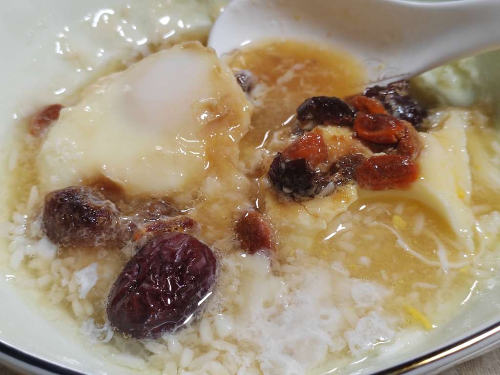 今晚給自己蒸了一碗酒糟蒸雞蛋,說是女生的氣血小甜水~夏天有荔枝的時候,我用的是白櫻荔和桂味荔枝(純甜),秋冬天用的是去核龍眼肉,隔一兩個月會蒸上一兩次,吃完暖暖的~