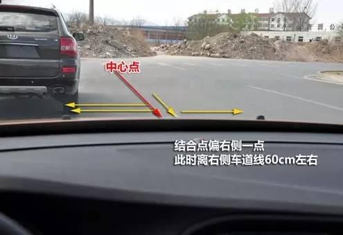 或者你也可以用第二種方法,當你以合適的坐姿平視前方時,能看到右車道延伸線與擋風玻璃左側相距大約30cm左右時,這時右車輪也就基本壓線了。