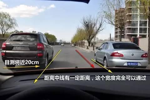 具體的判斷的方法也很簡單,當駕駛員以合適坐姿平視前方時,能看到左側延伸線(或左側障礙物)與擋風玻璃左側相距大約20cm的同時,右側延伸線(或右側障礙物)與車輛中線還有距離時,這個寬度就足夠通過了。