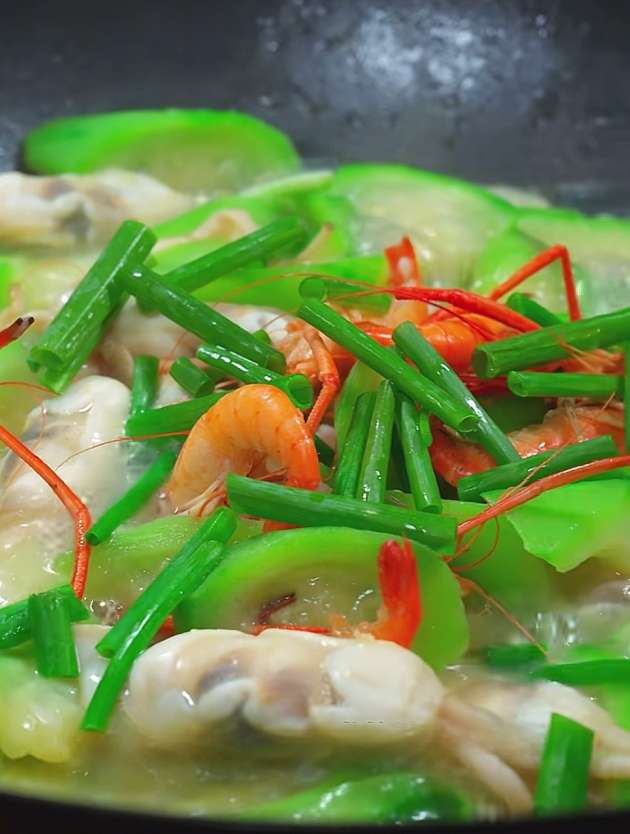 就這樣一道鮮美的,蟶子河蝦燴絲瓜就出鍋了!