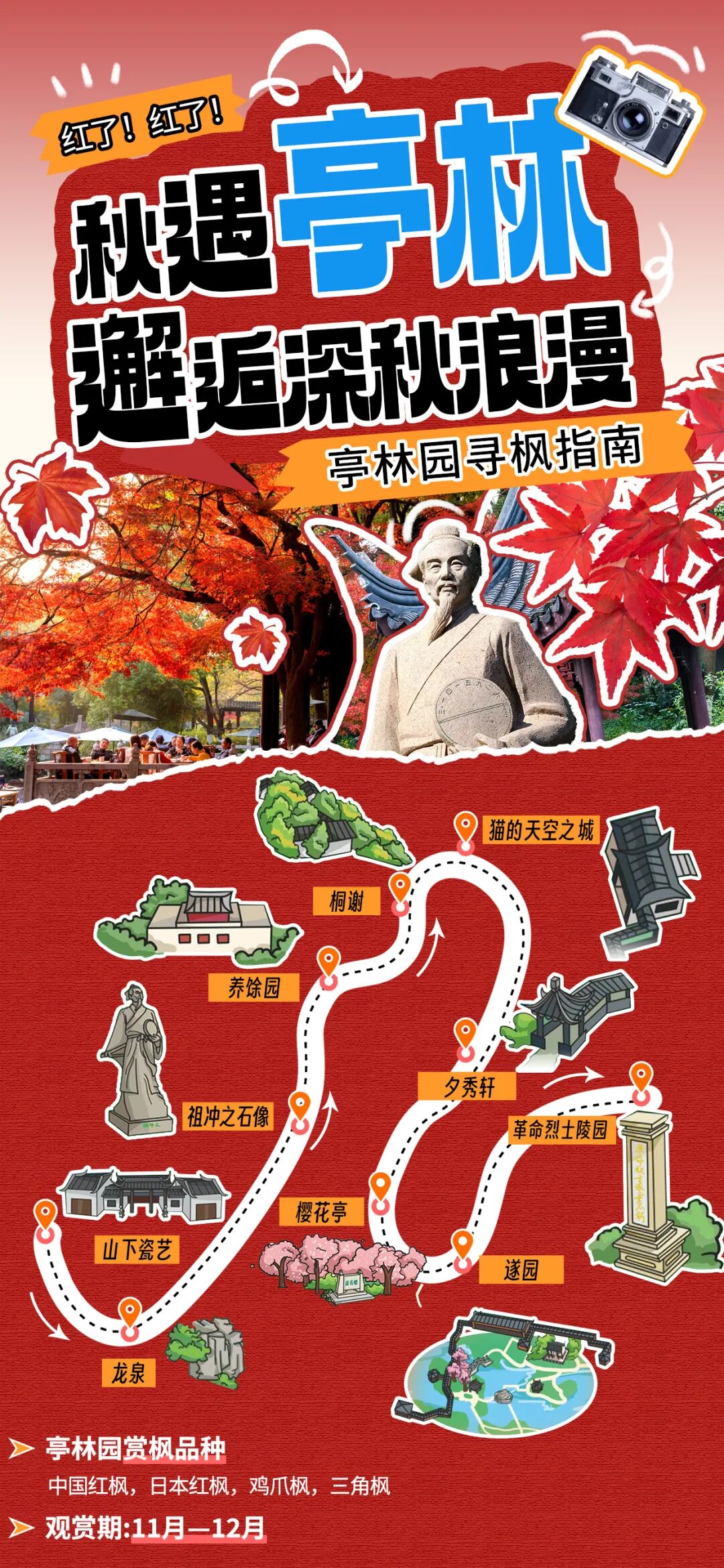 我們特意準備了一份《亭林園秋日尋楓線路圖》