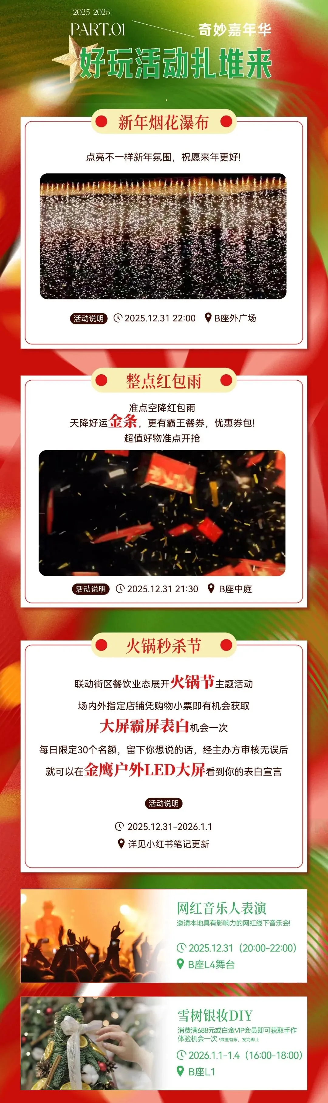 氣球派發、KPOP隨機舞蹈、奇幻雪景、零點巨型倒計時大屏、漫天禮花雨……這個跨年夜,給你一場關于音樂、魔法與告白的儀式感。