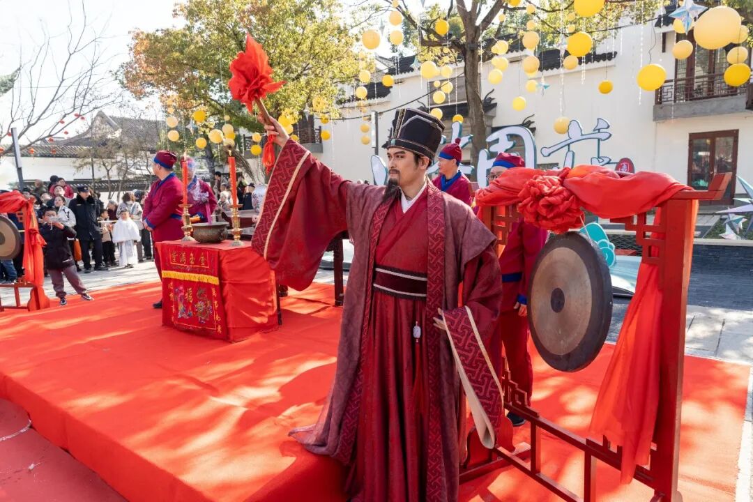 新年第一天,讓傳統與歡騰為你開莊。莊主誦讀祈福頌文,宣告:“周莊開莊,納福迎祥!”龍獅躍動,寓意新年朝氣蓬勃;連廂輕揚,演繹水鄉輕盈姿態;《只此周莊》角色互動,送上周莊專屬紅圍巾;水上搖快船駛出,形成“水陸并行”的流動風景。觀禮,接福,讓新年的第一份喜悅穩穩落地。