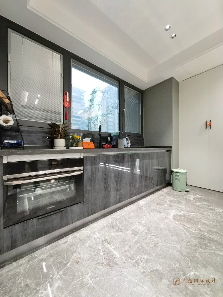線型燈飾將形制延續,達到和諧統一。格調灰的高級感、以及自然的生機,抒寫了居者平和寧靜的心境和高雅的藝術追求。