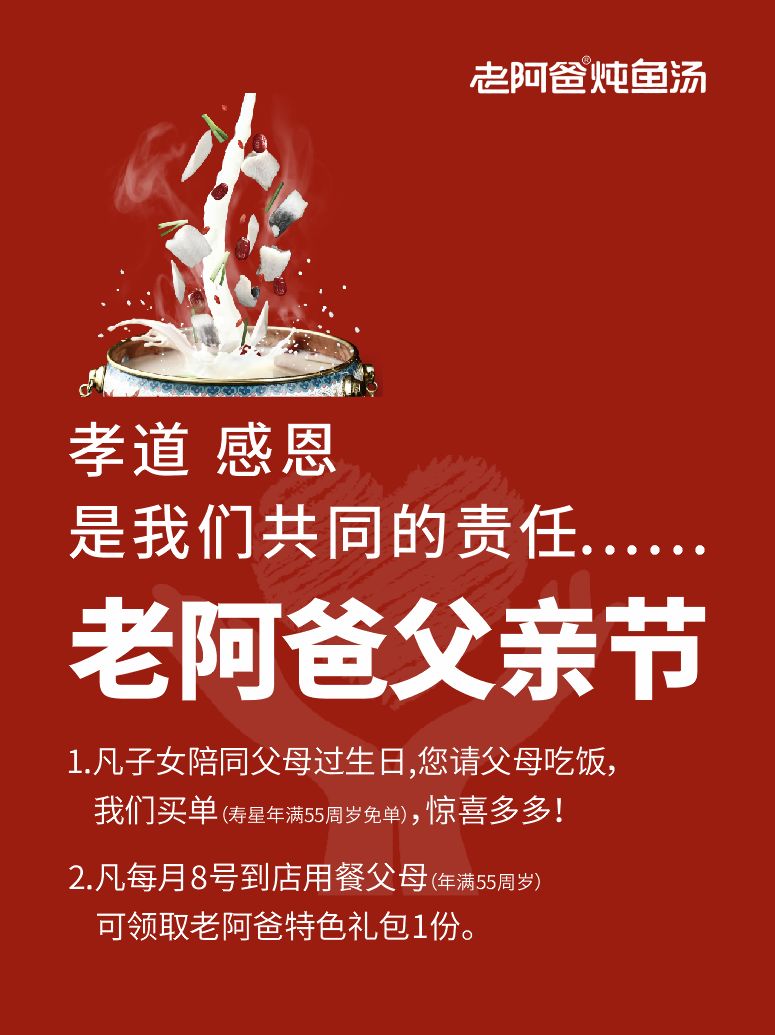 活動二:每月8日到店用餐父母(年滿55歲),可領取老阿爸特色禮包一份;