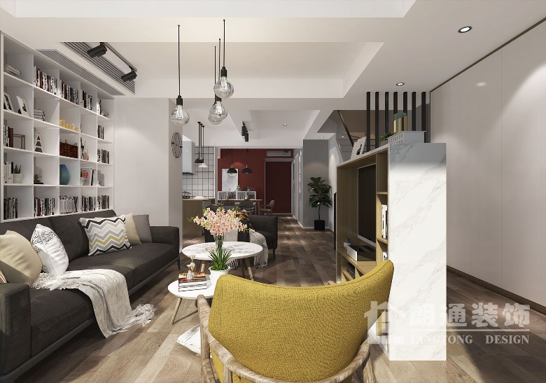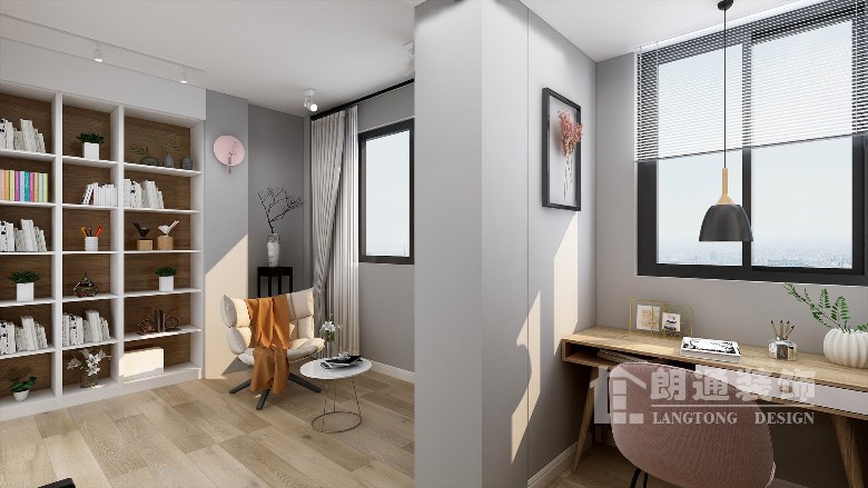 本案采用了現代北歐風格的裝修,不僅看起來清新明快,而且很有一種文藝腔調,簡單的黑白灰再加上實木色家具,最后用綠植點綴一番,一切便都搞定,似乎其它的裝飾都是多余。
